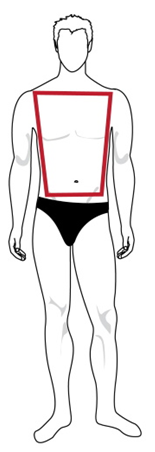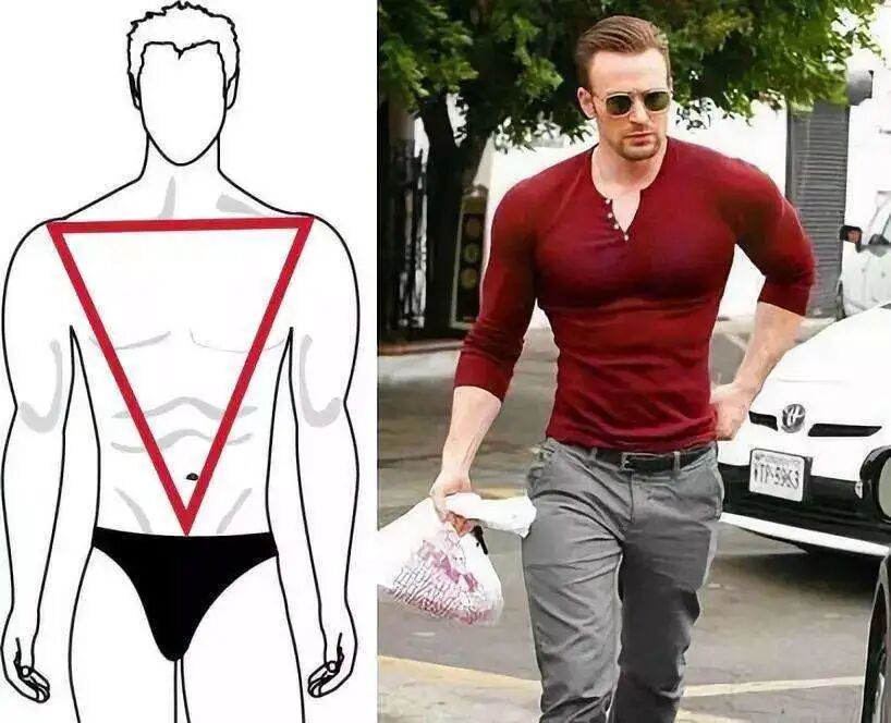 Shoulders and chest is disproportionally larger than the waist and hips, with big muscles. This shape is quite rare, this is the athletic build
